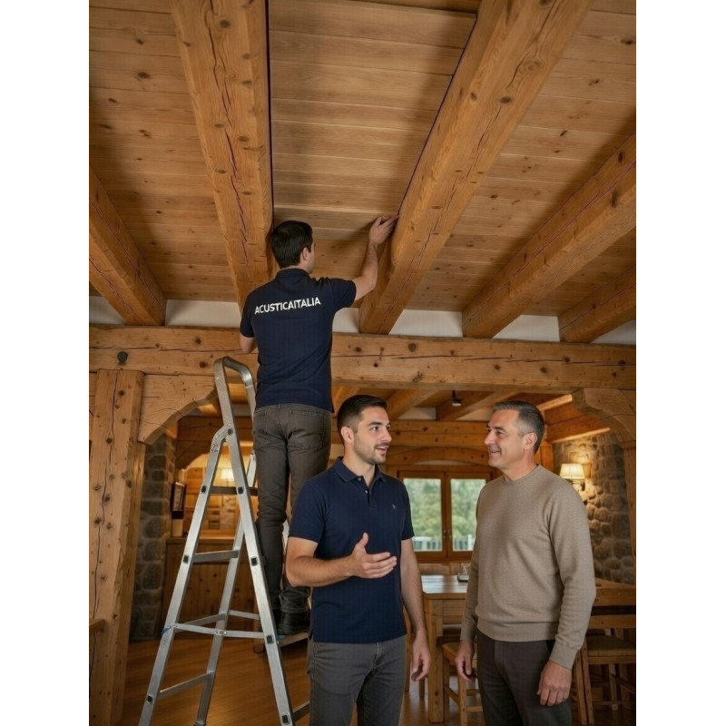 Perché permette di progettare ambienti in legno esteticamente puri ma tecnicamente evoluti. Perché mantiene l’identità materica del soffitto. Perché introduce il comfort acustico senza introdurre elementi invasivi.