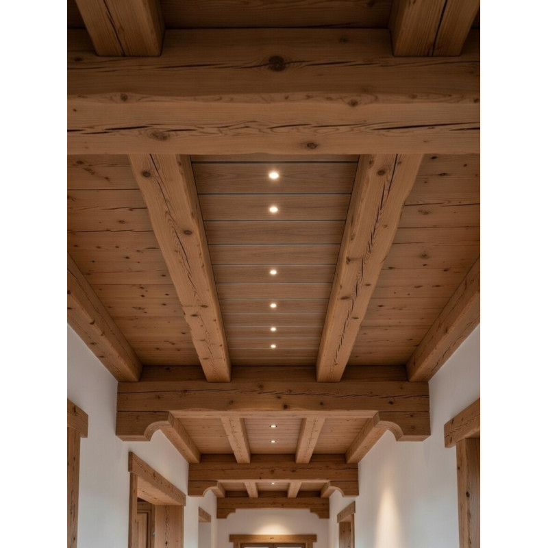 Progettato per integrarsi tra le travi dei soffitti in legno a falde, tipici dello stile Chalet e delle architetture di pregio, si inserisce nello spazio strutturale senza alterarne l'identità visiva. Non interrompe la linea del legno. Non crea contrasti cromatici forzati. Semplicemente scompare.